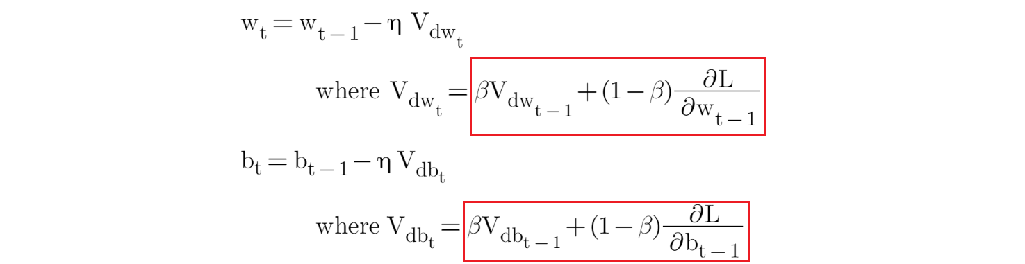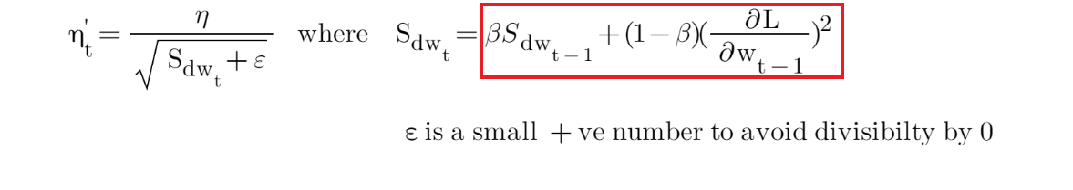 So, some of the optimisers that adopt the approach of EWA are (red box indicates the EWA part in each formula):