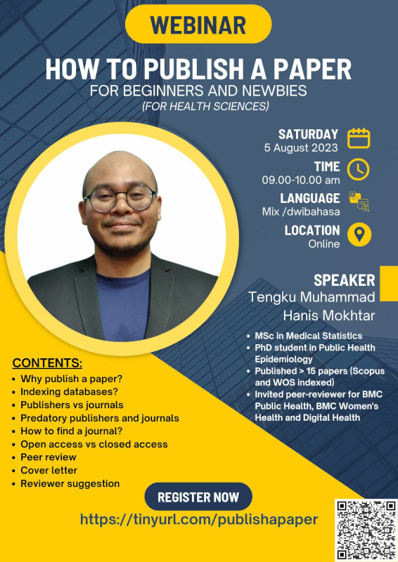 Publishing a scientific paper is one of the way to disseminate the findings of our research. This webinar covered all the necessary information needed to publish a paper for beginners. The slides and recording of the webinar is available for purchase at Jom Research website.