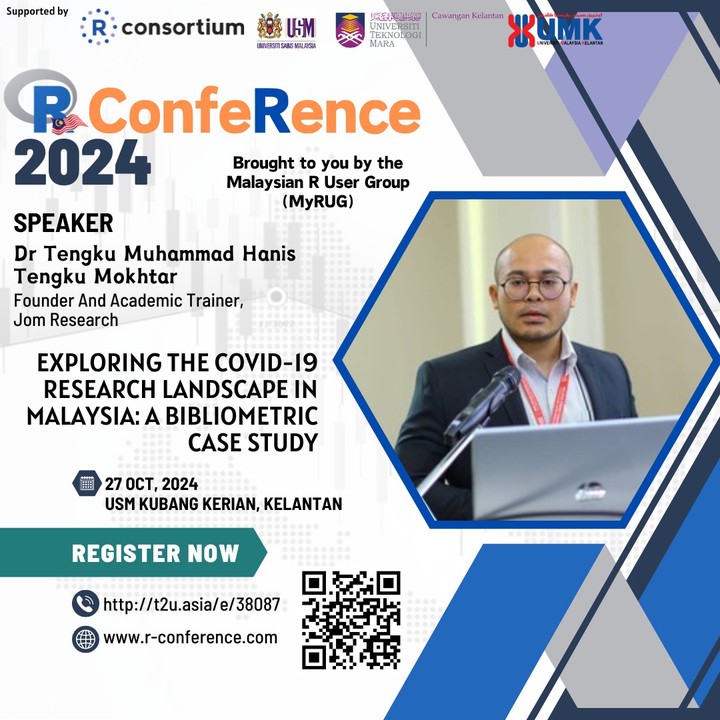 This talk presented a bibliometric analysis of Malaysia’s COVID-19-related research, using data from the Web of Science database. The bibliometric analysis, which quantitatively evaluated publications through metrics like citation counts, publication volume, and collaboration networks, provided insights into key research trends, influential contributors, and collaborative efforts. By employing R and Python for the analysis, this case study demonstrated how bibliometric techniques could uncover valuable patterns and trends within Malaysia’s pandemic research landscape.